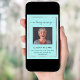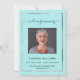 Ein blass blauer Hintergrund, ein silberfarbenes Imitat. Personalisieren und fügen Sie ein Foto, einen Namen, Daten und Ihren Text. Schwarzer Text.