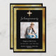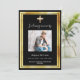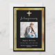 Eine elegante, moderne, einfache Beerdigung/Feier des Lebensprogramms. Ein klassischer schwarzer Hintergrund mit einem goldenen Imitat-Kreuz und Imitaten goldene Rahmen. Personalisieren und fügen Sie einen Namen und Details des Fotos hinzu. Weißer Text.