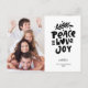 Verbringen Sie Feiertagsmagazin mit dieser Postkarte mit festlicher handgeschriebener Typografie, die "Peace Liebe Joy" lautet. Anpassen durch Hochladen Ihres vertikalen Fotos. Die Rückseite bietet Ihre eigenen Grüße, Namen und Notiz (oder löschen, um Platz für eine handschriftliche Notiz verlassen). Fügen Sie auch Ihre Rücksendeadresse auf die Rückseite. Feierlich und modern, aber einfach und klassisch - eine Karte, die Weihnachtsfreude vermitteln wird.