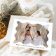 Senden Sie Ihren Freunden und Ihrer Familie feierliche Feiertage mit dieser angesagten Urlaubskarte! Die weiße Weihnachtskarte zeigt Ihr horizontales Foto gerahmt in einem gewellten, weißen Rahmen im Retro-Stil. Personalisieren Sie die minimale Urlaubskarte mit einem individuellen Gruß (als Frohe Weihnachten gezeigt) und Ihrem Familiennamen in schwarzer Schrift. Die Karte zeigt ein schwarz-weißes diagonales Streifen-Muster zurück.