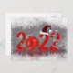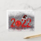 Fröhliche Weihnachts- und Neujahrsfotografie: roter, feiner Jahrgang 2022 mit farbenfroher Lichtkette, Rotweih-Weihnachtsbaumkugel, Weihnachtsmütze, Silberschneeflocke und Silberschneeflocke mit funkelnden Sternen, umgeben von weißen Glamouren.
