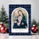 Weihnachts-Weihnachtskarte in Kariertem Foto mit festlichem Rot.