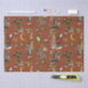 Weichteilpapier mit handgemalten Illustrationen festlicher Pilze. Ein fröhlicher Pilz baut einen Schneemann vor ihrem roten Pilzhaus. Ein Frosch und eine Kröte genießen eine heiße Tasse Kakao. Und eine Schnecke trägt ein Weihnachtsgeschenk durch einen Pilz- und Zuckerrohrwald.