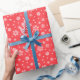 Schönes und einfaches Weihnachtspapier mit weißen Schneeflocken auf rotem Hintergrund. Ideal, um Ihre Geschenke oder Ihre Bestellungen in dieser kommenden Feriensaison zu verpacken. Von Patricia Alvarez entworfen