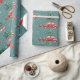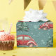 Brillenfarbenes Papier, in dem sich schöne rote Autos und schneebedeckte Weihnachtsbäume präsentieren, perfekt um Ihren Geschenken den Feiertag zu vereinen.