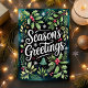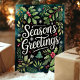 Mit dieser wunderschön gestalteten "Grüße der Jahreszeit" Karte können Sie sich gemütliche Urlaubswünsche aussprechen. Mit einer üppigen Anordnung von heiligen, immergrünen Ästen, Beeren und Schneeflocken, erobert diese Karte das Wesen der Festsaison. Diese Karte ist ideal, um sich mit Freunden, Freunden oder Kollegen zu treffen. Sie wird den Urlaubsgeist jedes Einzelnen aufheitern.