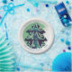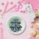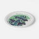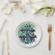 Feierliche Grüne Weihnachtsbaum Familie Feiertage Papier Teller. Feierlich dekorierter Weihnachtsbaum in einem Kreissaal, umgeben von fröhlichen Weihnachtsbeschreibungen, Familienname und Jahr - personalisieren Sie die Teller.