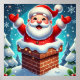Ein fröhlicher Weihnachtsmann lächelt und winkt aus einem schneebedeckten Kamin inmitten einer winterlichen Wunderlandschaft und breitet sich aus