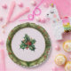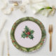 Dieser festliche Weihnachtstisch, der ein herrliches heiliges Thema hat, wird Ihren Tisch mit Urlaubsvergnügen Set machen. Dieser Teller ist mit einem weißen Zentrum mit Heiligenbäumen versehen und von einem festlich grün-grünen botanischen Rahmen umgeben, der mit flüchtigen Blicken von Kiefernkanüle darunter umgeben ist. Diese werden so gepflegt aussehen wie jedes andere feine Geschirr für den Urlaub!