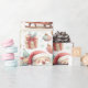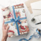 Lebhaftes Verpackungspapier mit wunderschönen Weihnachtsbildern bringt Wärme und Fröhlichkeit. Der Weihnachtsmann, die Rentiere und die fröhlichen Ornamente tanzen über die Oberfläche, was einen skurrilen Urlaubssgeist hervorruft.