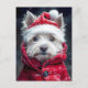 Dieses bezaubernde West Highland White Terrier ist bereit für den Urlaub! Dieses kleine Jungtier besticht durch seine gemütliche Weihnachtsmannmütze und seine rote Wintermantel. Mit sanften Schneebauungen in Fell und Mantel ist dieser Winterwunderlandmoment voll von Wärme und Charme. Die ausdrucksstarken Augen und Knopfnase des Westie tragen dieser Urlaubsszene eine zusätzliche Schicht von Schnittheit bei.