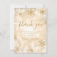 Elegant & Festive Gold Sparkle Winter Wedding "Dankeschön" Kartenvorlage mit Dankeschön Text, Glitzer Schneeflocken und modernem Typografie-Script.