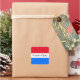Dieses festliche patriotische Design zeichnet sich durch einen weißen Mittelstreifen mit "Amerikanische Unabhängigkeitstag"-Text und rot-blau-blaue Streifen aus. Die obere und untere Streifen sind mit farbigen weißen Kachelpolka-Punkten versehen. Der Text kann personalisiert sein.