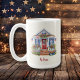 Feiern Sie stilvoll mit dieser patriotischen 4. Juli personalisierten Kaffee-Tasse! Dieses Design mit einer charmanten Vorstadt-Zuhause, die unter amerikanischen Flaggen verziert ist, spiegelt den amerikanischen Unabhängigkeitstag perfekt wider. Vollständig anpassbarer Text lasse Ihnen, die Details zu personalisieren, um Ihre Dekoration wirklich unvergesslich zu machen. Die lebendige Dekoration des Amerikanischen Unabhängigkeitstags ist ein Set für ein abwechslungsreiches Fest, ob Sie nun mit der Familie, mit Freunden oder in der ganzen Nachbarschaft sind.