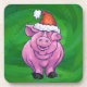 Feierliches Schwein in Weihnachtsmannmütze auf Grü Getränkeuntersetzer