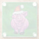 Feierliches Schwein in Weihnachtsmannmütze auf Grü Glasuntersetzer