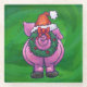 Feierliches Schwein in Weihnachtsmannmütze auf Grü Glasuntersetzer