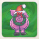Feierliches Schwein in Weihnachtsmannmütze auf Grü Rechteckiger Pappuntersetzer