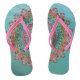 Zauberhafte Flip-Flops mit leuchtenden bunten Farbtönen, die aus einer farbenfrohen Mandala in einem friedlichen blauen Hintergrund herausragen. Groovy!