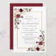 Die elegante Feier einer Lebenseinladung umfasst zwei bordeauxrote Rose und blütenrosa Blumenarrangements, die einen goldenen Rahmen schmücken. Der Name des Verstorbenen wird in einem traditionellen Skripttext geschrieben. Der gesamte Text kann leicht bearbeitet werden, um eine persönliche Erinnerung zu schaffen.