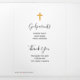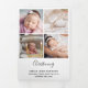 Foto Dankeschön Karte an Ihre Familie und Gäste nach der Taufe oder Taufe Ihres Kleinen schicken. Das Design hat eine Foto-Collage auf der Vorderseite mit Babyname, Datum und Veranstaltungsort. Auf der Rückseite können Sie Ihre eigenen Überschriften und Text, wie z.B. Pateneltern und Dankeschön Nachricht hinzufügen. Wenn Sie die Karte öffnen, ist ein Foto auf der Lasche und 3 weitere Fotos drin. Ihre Bilder werden in vertikalen und quadratischen Formaten angezeigt. Wenn Sie Probleme mit der Platzierung haben, versuchen Sie, das Foto auf Portrait/Quadrat (falls zutreffend) zuschneiden und neu hochzuladen.