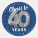 Elegante Sticker zum vierzigsten Geburtstag mit einem trendigen blauen Hintergrund, der in jede Farbe verändert werden kann, silberner funkelnd Glitzer und das Sprichwort "jubelt bis 40 Jahre" mit vierzig silbernen Helliumballons.