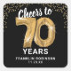 Elegante siebzigste Geburtstagsfeier-Aufkleber mit einem stilvollen schwarzen Hintergrund, der in jede Farbe verändert werden kann, funkelnd Glitzer, das Sprichwort "jubelt bis 70 Jahre" mit siebzig goldenen Helliumballons, ihren Namen und das Datum der Feier.