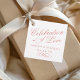 Die feierliche Goldhochzeit der Rose "Feier der Liebe" begünstigt das Design von Tags mit einer wunderschönen Typografie, die ein traditionelles geblüht Kalligrafieschrift mit klassischem Blocksatz auf weißem Hintergrund verbindet. Der benutzerdefinierte Text in Monogramm kann mit den Braut- und Bräutigamen und dem Hochzeitstermin personalisiert werden. Enthält einen dekorativen Bildlauf-Akzent. Auf der Rückseite ist Platz für ein Foto enthalten. Bitte kaufen Sie unsere Classic Elegant Rose Gold Wedding Collection für die Koordination von Designs.