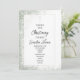 Eine Einladung zum Taufen mit grünem Spatter im Hintergrund mit schwarzer Schrift.