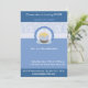 Individuell niedliches Baby Erstgeburtstag Einladung mit blauen Blumenmuster auf dem Hintergrund und leckeren Kuchen . Super cool und niedlich!