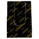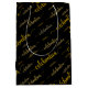 Schwarze Geschenktasche mit Goldfarben in verschiedenen Größen mit der Textfeier in einem skript-Schriftart mit Glyphe. Diese Geschenktasche und Design geht für die meisten Anlässe wie Feiertage, Jubiläum, Geburtstag, Hochzeiten, Babyduschen und mehr. Dieses moderne und minimalistische Design in Gold auf schwarz macht es elegant und exklusiv. Bestellen Sie diese und nutzen Sie sie für verschiedene Veranstaltungen.