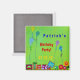 Passen Sie diesen farbenfrohen Magneten mit Ihrem Event und Datum an! Geschenke und fliegende Drachen vor neonfarbenem Hintergrund. Eine Kunstillustrierung von Minerva Bloom für Angela Piraino: www.angelapiraino.weebly.com