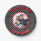 Mit unseren individuell anpassbaren Tellern aus schwarz-weißem Polka-Dot können Sie ganz besondere Feste feiern! Diese Teller mit einem zauberhaften schwarzen Hintergrund und fröhlichen weißen Polka-Punkten sind die perfekte Mischung aus Klassik und Spaß. In der Mitte ermöglicht ein Platzhalter im runden Foto den Kunden, ihre Teller mit ihren eigenen Fotos zu personalisieren. Diese Teller sind von einem markanten roten Rand umgeben und bieten Platz für anpassbaren Text sowohl über als auch unter dem Foto. Ideal, um eine persönliche Touch mit Namen, Nachrichten oder Veranstaltungsthemen hinzuzufügen. Ob es "Way To Go!" für einen Abschluss, "Go Team!" für eine Sportveranstaltung oder eine herzliche Botschaft, diese Teller werden Ihre Ansammlungen zu einem unvergesslichen Erlebnis machen.