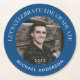 Feiern Sie den Graduate Modern Blue Circle Abschluss Round Paper Untersetzer mit Ihrem Foto der Wahl, die Hintergrundfarbe kann im Designwerkzeug in jede andere Farbe, die Sie möchten geändert werden.