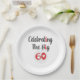 Papier Teller für ein Party für einige zum 60. Geburtstag. Schwarze und rote Buchstaben "Feiern der großen 60"