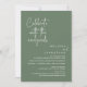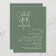 Modernes Minimalistisches Script, im Grün Salbeigrün Thema, Hochzeitfeier Party Einladung Karte (feiern mit den Neugeborenen). Es ist perfekt für Ihren Hochzeitsfeier Empfang / Post Hochzeitsfeier Party.