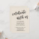Laden Sie Ihre Gäste mit diesen einfachen Karten zu Ihrer Hochzeitsfeier ein. Im Design habe ich einen lässigen, modernen, handgeschriebenen Schriftart benutzt, um ein grafisches Typografie-Overlay zu erstellen, das "Feiern mit uns" liest. Füllen Sie die Vorlagenblöcke mit Ihren Daten aus, um das Design zu personalisieren. Alle Ebenen wurden freigeschaltet, sodass Sie auch auf die Schaltfläche klicken können, um den Text noch besser anzupassen und neu zu positionieren oder sogar Größen oder Schriftart zu ändern. Die Hintergrundfarbe ist ebenfalls editierbar; ändern Sie sie in eine Ihrer Hochzeitsfarben, wenn Sie es vorziehen. Ich bin auch gerne bereit, die Art von Grafik, die Sie bevorzugen auf der Rückseite, wenn Sie besondere Wünsche haben hinzuzufügen. Bitte zögern Sie nicht, sich um Hilfe bei der Anpassung zu bemühen. // 90//