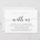 Schönes elegantes schwarzes Script, Hochzeitsankündigung, Einladungskarte (Feiern mit uns). Dies ist ideal für Ihren Hochzeitsempfang und Ihr Party nach der Hochzeit. Fügen Sie Ihre Daten in passender Schriftart / Schrift hinzu.