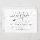 Moderne Romantische Kalligrafie, Schwarzes Drehbuch, Einladungskarte für das Hochzeitessen (Feiern mit uns). Es ist ideal für Ihre Hochzeit Probe Dinner feiern Party, bevor Sie Ihren besten Tag. Fügen Sie Ihre Daten in passender Schrift hinzu.