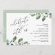 Schönes modernes Romantisches Design, in eucalyptus Blätter grüne Aquarell Thema, Hochzeit Probe Dinner und Tanz Einladung Karte (feiern mit uns). Dies ist ideal für Ihr Hochzeitsfest Probe Dinner Party. Fügen Sie Ihre Feierlichkeiten Details hinzu. #TeeshaDerrick