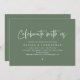 Feiern Sie mit uns, modernes minimalistisches Design Thema, Hochzeit Probe Dinner Einladungskarte (im Wald Salbei grün Thema). Planen Sie ein Hochzeitsfest Probe Dinner mit der zu sein Braut und zu sein, vor ihrem großen Tag? Die Einladungs-Card für das Abendessen bei Hochzeit und Probe lädt zum Verweilen ein. Fügen Sie Ihre Probe Dinner Details in passenden Schriftart / Buchstaben.