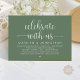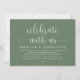 Mit unserer modernen, wunderschönen, zeitgenössischen, rustikalen Grün-Salon-Hochzeitsfeier "Feiern Sie mit uns" geben Sie Ihr Glück immer wieder bekannt. Diese Einladung ist für Paare gedacht, die ihre Liebe fortsetzen und ein perfektes Gleichgewicht von Eleganz und Charme schaffen. Sie bietet den Rahmen für ein unvergessliches Erlebnis. Das moderne Skriptdesign verleiht Ihrem Tag eine Touch zeitloser Anmut. Entworfen von der talentierten TeeshaDerrick, ist diese Einladung ein stilvoller Ausdruck Ihrer anhaltenden Liebe.
