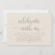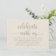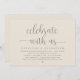 Modernes, minimalistisches Skript, dunkelgraues Creme-Thema, Hochzeitsempfangskarte (feiern Sie mit uns). Es ist perfekt für Ihren Hochzeitsfeier Empfang / Post Hochzeitsfeier Party. Fügen Sie Ihre Daten hinzu.