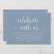 Modernes, minimalistisches Skript, staubblaues Thema, Einladungskarte für Hochzeiten (feiern Sie mit uns). Es ist perfekt für Ihren Hochzeitsfeier Empfang / Post Hochzeitsfeier Party. Fügen Sie Ihre Daten in passender schwarzer Schriftart / Schrift hinzu.