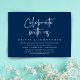 Markieren Sie den Anfang Ihres Lebens mit Eleganz mit unserer zeitgenössischen Hochzeitsfeier Einladungskarte "Feiern Sie mit uns". Diese Einladung eignet sich perfekt für Paare, die ihren fröhlichen Anlass ausdehnen und mit einem Hauch von Verspieltheit die Bühne für eine unvergessliche Veranstaltung geben. Das zeitlose blaue Navy-Dekor verleiht Ihren Festlichkeiten eine Touch raffinierten Charmes. Diese von TeeshaDerrick entworfene Einladung verspricht, Ihre Liebe schön zu erfassen.