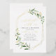 Feiern Sie mit uns! Moderne grüne Hochzeitsfeier mit rustikalem botanischem Blattdesign in Aquarellfarbe mit echten Goldfolien-Blätter und geometrischem Rahmen, einfach und elegant, ideal für rustikale Hochzeiten im Sommer, botanische Gartenhochzeit im Frühling. Alle passenden Teile in der Sammlung anzeigen