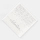Papier Dinner Serviette mit silber Glitzer und den Text "Feiern". Der Text ist in einem Skript mit einer wirbelnden Glyphe am Anfang und Ende. Diese Serviette ist vielseitig und kann für viele Gelegenheiten wie Neujahr, Geburtstag, Jubiläum und andere verwendet werden. Es ist einfach, dieses monochrome Design mit anderen Dekorationen und Effekten in Silber und Weiß zu verbinden.