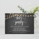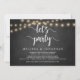 Feiern wir Party, Hochzeitsfeier Ankündigung / Einladungskarte, in rustikaler Farm Chalkboard, String Lights Design. Dies ist ideal für Ihren Hochzeitsempfang und Ihr Party nach der Hochzeit. Fügen Sie Ihre Daten in passender Schriftart / Schrift hinzu. #TeeshaDerrick