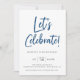 Feiern wir den Geburtstag moderner blauer Schrift Einladung