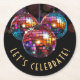 Feiern wir den Untersetzer mit drei bunten Diskobällen auf schwarzem Hintergrund mit einem hellen Flair. Ein lustiges Party-Accessoires, das Sie unter Ihrer Sekt- und Champagnerbrille genießen können. Dies wird ein farbenfrohes Designelement auf allen Tabellen sein. Feiern Sie das neue Jahr!